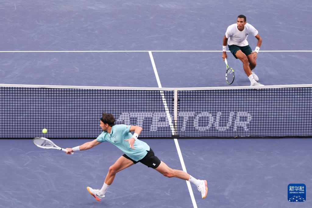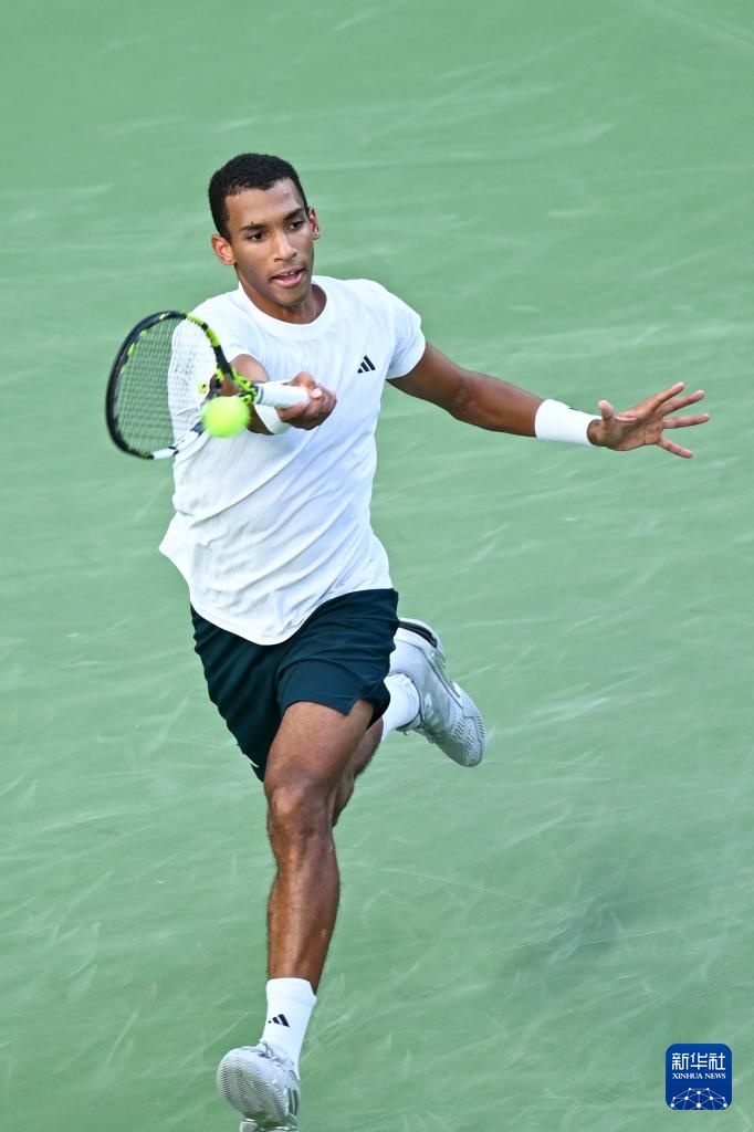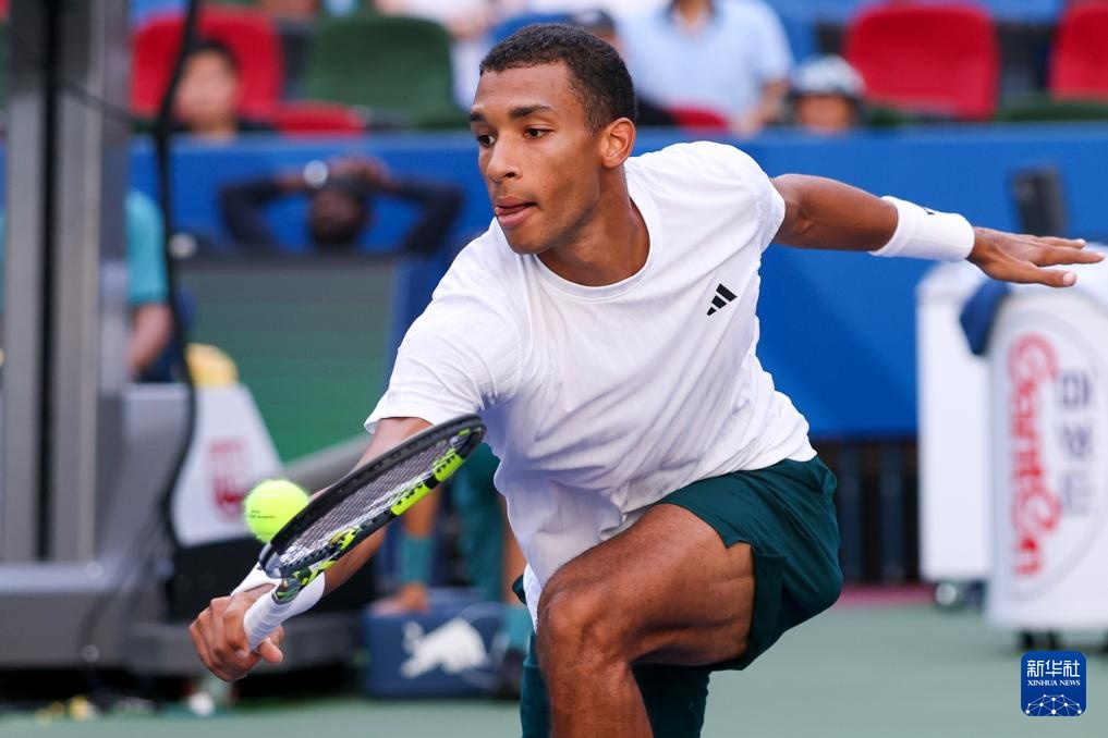 10月10日,奥热-阿利亚西姆在比赛中回球。新华社记者 王翔 摄