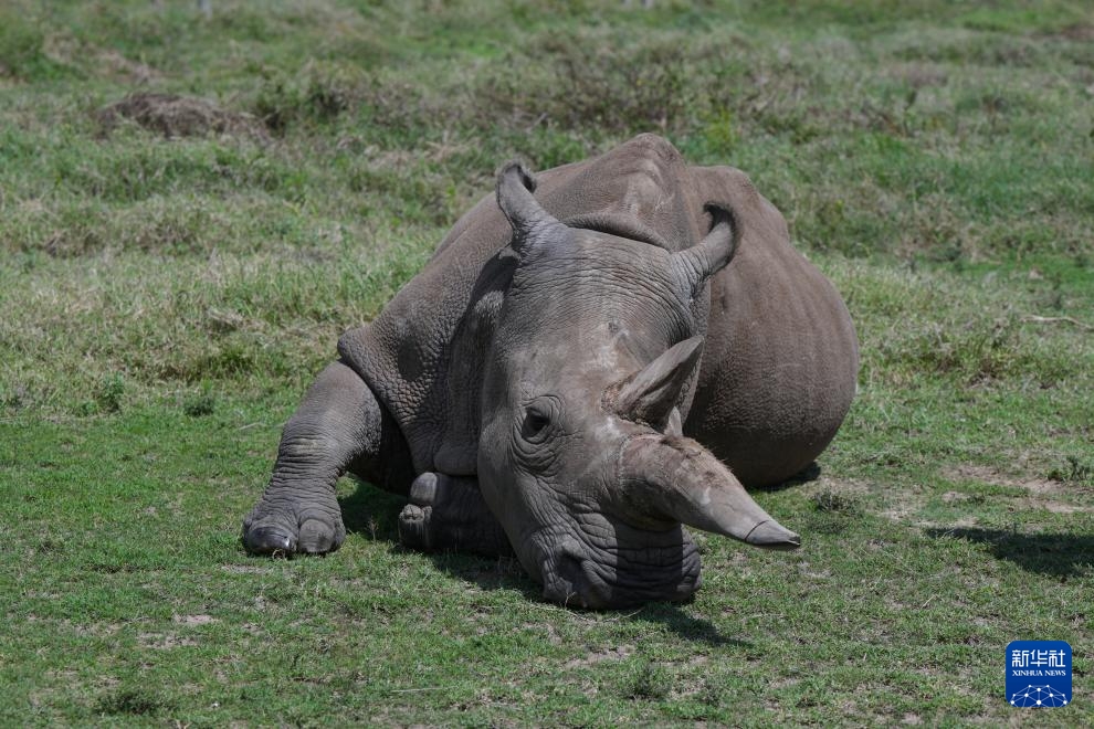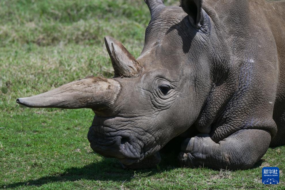 这是10月7日在肯尼亚中部莱基皮亚郡奥尔佩杰塔自然保护区拍摄的雌性北方白犀牛“娜金”。新华社记者 杨光 摄