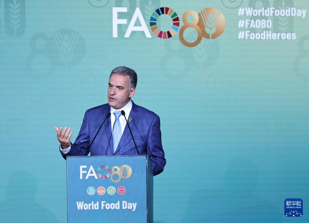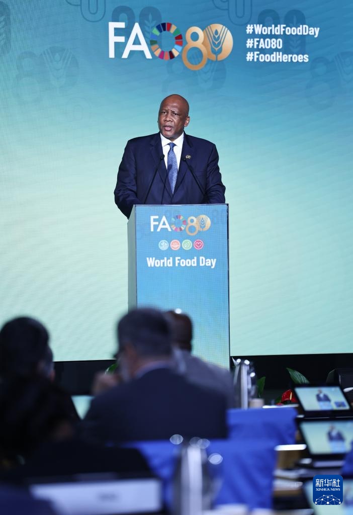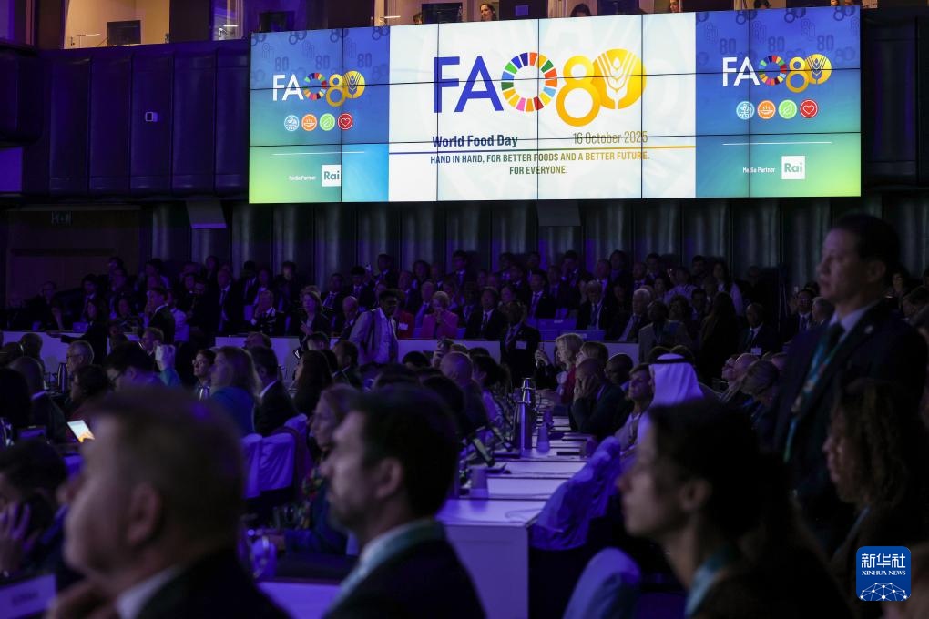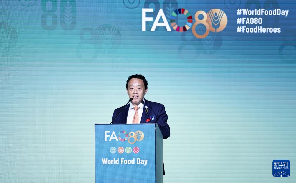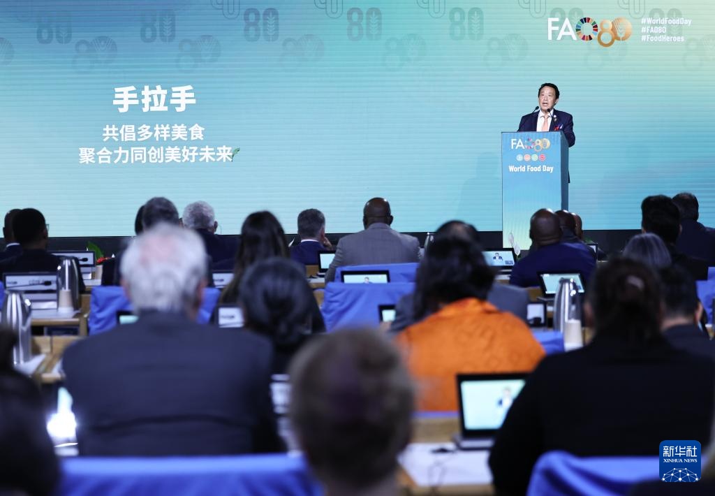 10月16日,世界粮食日暨联合国粮食及农业组织成立80周年庆祝活动在位于意大利罗马的联合国粮农组织总部举行。新华社记者 李京 摄
