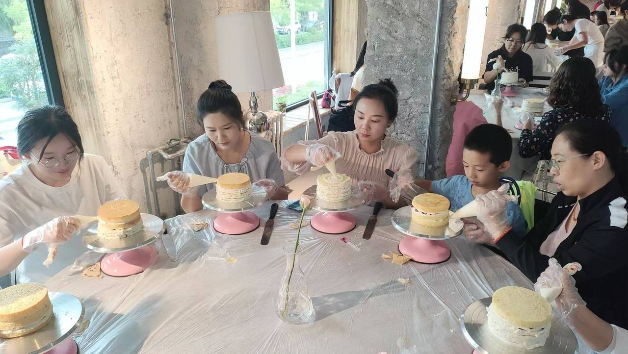 活动特别邀请专业烘焙老师全程授课,不仅讲解烘焙基础理论与操作安全规范,更将重点放在实操技能提升上——从原料特性配比、工具正确使用,到蛋糕裱花、西点造型设计,再到融入传统节日——七夕元素的特色作品创作,每一个环节都细致指导。学员们全情投入,从称量配料到创意装饰一丝不苟,专门设置的生日蛋糕制作环节,更让大家的动手能力与创意表达得到切实提升。