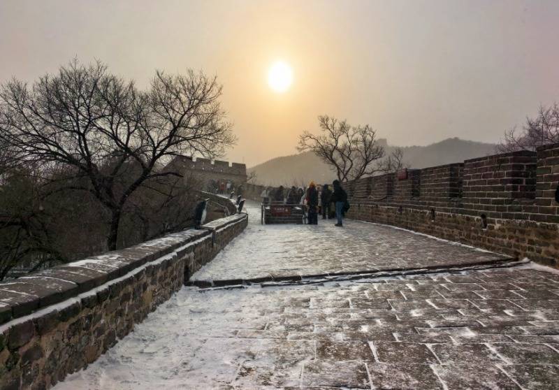 踏着积雪前行,工作人员扫帚扫过之处,蜿蜒的步道逐渐显露。银装素裹的长城间,这抹忙碌的身影,是冬日里守护游客安全的温暖风景线。