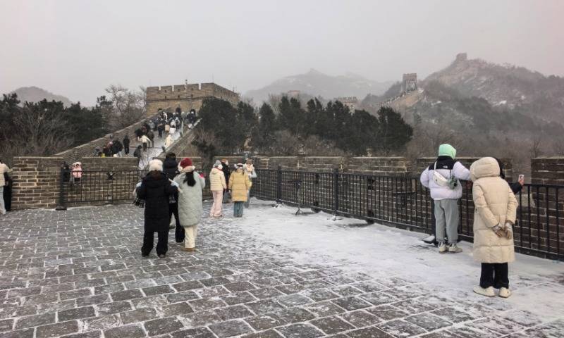 “太美了!这样的长城难得一见。”来自广东的游客林先生兴奋地表示,他特意选择冬季来北京旅游,没想到有幸遇到初雪中的长城。